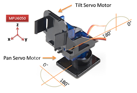Pan Servo Motor 繞著 MPU6050 的 Z 軸轉動,輸出為 yaw = ypr[0];Tilt Servo Motor 繞著 MPU6050 的 Y 軸轉動,輸出為 pitch = ypr[1]。