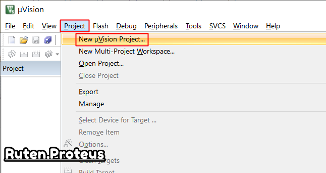 點選 "Project -> New uVision Project...",開啟新建專案對話視窗。
